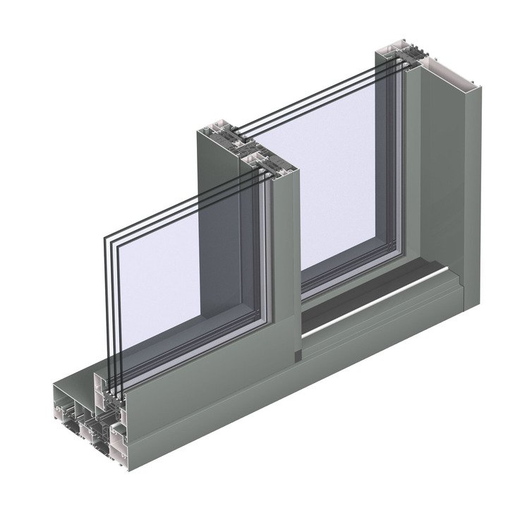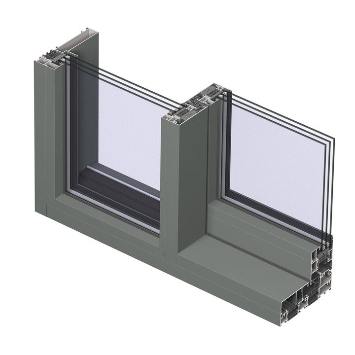 The Passive house level thermal performance, and best in class water performance (up to 1500Pa) are combined with beautiful lines and details. Most components and accessories are concealed or flush integrated in the profiles, the visible sightlines are kept consistent throughout sliding parts, reinforcements and other transom profiles, and the frame can be concealed.