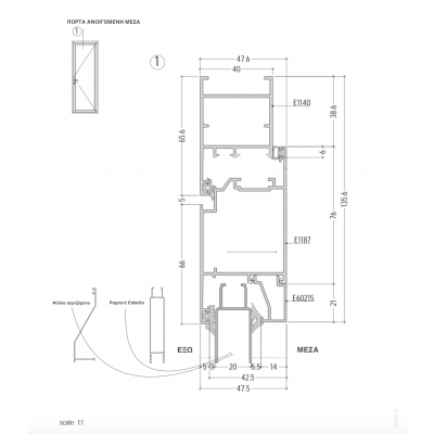 Πόρτα Ανοιγόμενη με τζάμι ETEM E45 με Θερμομόνωση
